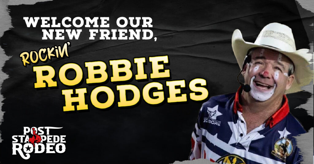 Rockin’ Robbie Hodges new Clown/Barrelman of the Post Stampede Rodeo!